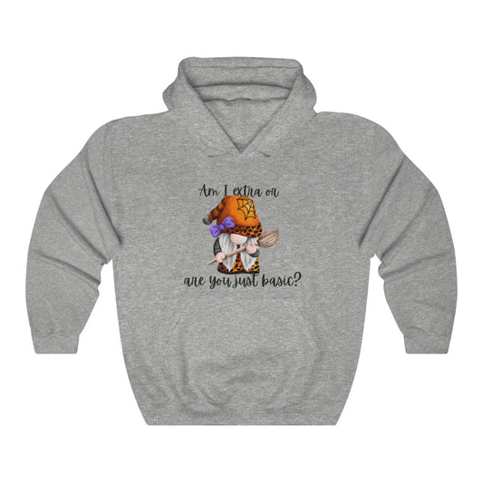 Halloween Gnome, Am I extra or are you just basic? Snarky humor Unisex Heavy Blend™ Hooded Sweatshirt