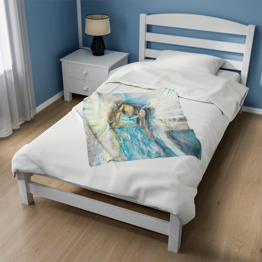 Velveteen Blanket - Teal Blue Angel Wings Design