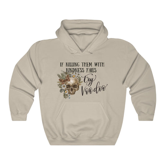 Voodoo, kill them with kindness, skull & floral Yellow mites colors Unisex Heavy Blend™ Hooded Sweatshirt