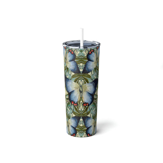 Tropical Blue Butterfly Skinny Steel Tumbler with Straw, 20oz