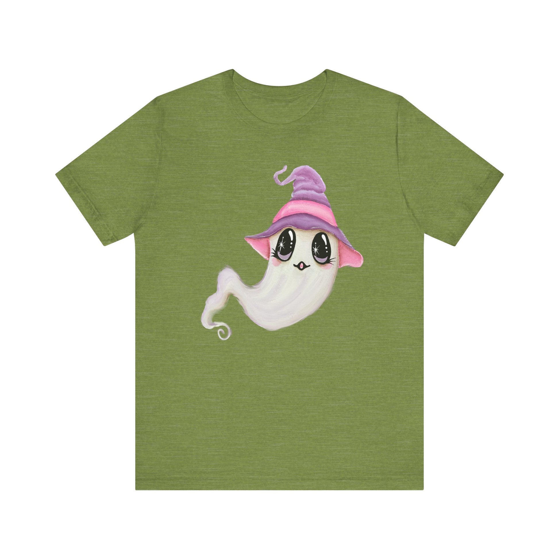 Halloween Ghost Tee Shirt, Cute Ghost in Purple Witch Hat, Fall shirt, Halloween shirt, fall sweater